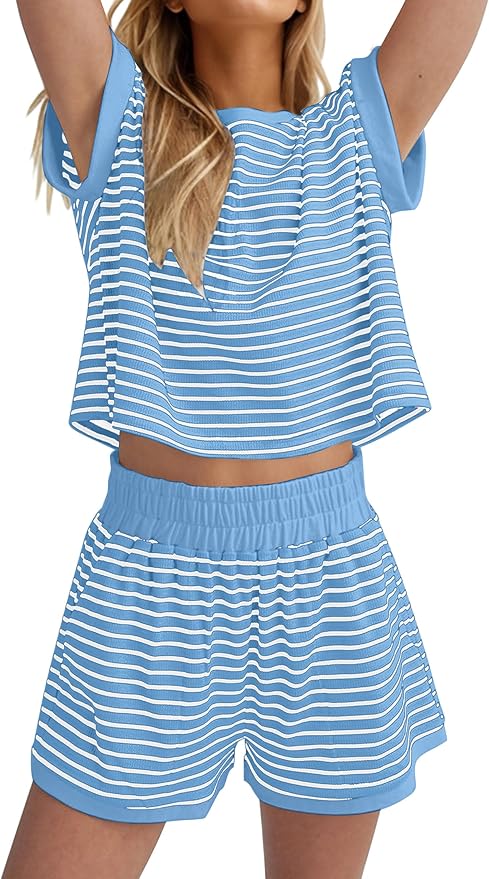 - Material: This stripe shorts sets women 2 piece outfits is made from ribbed knit fabric, soft, breathable and lightweight. The casual ribbed lounge sets make you comfortable and stylish for any occasion.